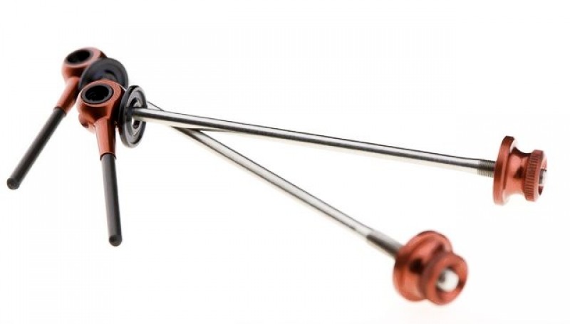 Coppia di bloccaggi rapidi, realizzati in carbonio, titanio ed alluminio 7075.