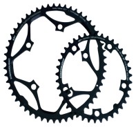 Corona in Ergal 7075-T6, per guarniture con giro bulloni Shimano da 130 mm. Compatibile con catene 10/11V. Trattamento superficiale in Ceramica e Teflon: la diminuzione dell'attrito comporta un aumento di silenziositą e durata dell' 80% rispetto a corone tradizionali ! Anodizzazione nero opaco. Dentature disponibili: 38 - 39 - 42 - 50 - 52 - 53. Peso coppia: 138 gr. (52/38 denti).