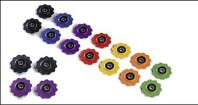 Coppia pulegge per cambio. Movimento su cuscinetti sigillati. Disponibili con 10 oppure 11 denti. Colore: nero. Peso coppia: 20 gr.