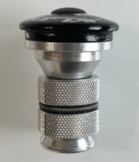 Expander in alluminio, per forcelle senza filetto. Fornito con tappo di chiusura attacco in carbonio e vite di fissaggio. Diametro: 1.1/8". Peso (con tappo e vite): 40 gr.