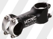 Attacco manubrio in alluminio 6061-T6, realizzato tramite processo CNC. Chiusura anteriore removibile tramite 4 viti. Reversibile con inclinazione di 6 gradi. Anodizzazione nera, con frontalino argento. Collarino per curve da 31,8 mm. Viteria in acciaio. Diametro di 1.1/8". Misure disponibili: 60, 80, 100 e 120 mm. Peso: 125 gr. (100 mm.).