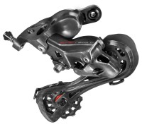 Cambio a 12 velocità, per guarnitura doppia. Corpo superiore in tecnopolimero rinforzato con fibra di carbonio. Biella esterna e bilanciere esterno in fibra di carbonio unidirezionale. Bilanciere interno in alluminio forgiato, anodizzato nero. Parallelogramma con geometria Ultra-Shift ed Embrace Technology, in grado di muoversi con una traiettoria che segue perfettamente la curvatura di qualunque combinazione di pignoni. Pulegge alleggerite in tecnopolimero, con movimento su cuscinetti con sfere ceramiche. Sistema di fissaggio cambio in due pezzi, realizzato in alluminio. Viteria e registri in titanio. Pignone minimo: 11 denti. Pignone massimo: 32 denti. Peso: 181 gr. Garanzia: 3 anni.