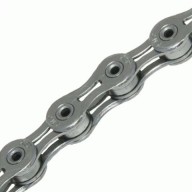 Catena per gruppi strada Campagnolo, Shimano e SRAM ad 11 velocità. Piolini forati e maglie alleggerite. Trattamento superficiale in nickel, per migliorare la resistenza a corrosione e la scorrevolezza. Connettore di chiusura a falsa maglia Missing Link, per apertura e chiusura catena senza attrezzi. Colore: argento. Peso: 237 gr. (114 maglie).