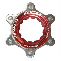 Adattatore per il montaggio di dischi International Standard a 6 viti su mozzi e ruote tipo Center-Lock. Realizzato in alluminio CNC con placca in acciaio. Fornito con ghiera di fissaggio in alluminio, anodizzata rossa oppure nera. Disponibile anche in versione con foro maggiorato, per ruote anteriori con assale passante da 15/20 mm. Peso (con ghiera): 23 gr.