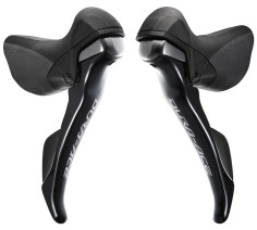 Comandi Dual Control STI, compatibili con cassetta pignoni a 11 velocità e guarnitura doppia. Possibilità di cambiare fino a 3 pignoni con un unico movimento di leva. Leve freni in carbonio. Collarini e viteria in titanio. Forniti con cavi trattati ai polimeri e guaine per freni/cambio/deragliatore. Peso coppia: 365 gr.