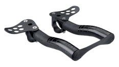 Appendici per cronometro realizzate in alluminio 6061. Appoggi per avambraccio removibili e completi di imbottitura. Ponticello di collegamento anteriore, richiesto da International Triathlon Union. Lunghezza (da centro curva a fine prolunga): 140 mm. Morsetti compatibili con curve da 31,8 mm. Colori disponibili: anodizzato nero e bianco. Peso: 266 gr.