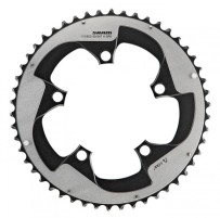 Corona in alluminio aerodinamica, con finitura bicolore argento/nero. Compatibile con tutte le guarniture compatte 11V, aventi giro bulloni a 5 fori da 110 mm. Doppio piolino salvacatena, per adattare la corona a qualunque guarnitura (normali o con quinto foro dietro pedivella): quello inutile puņ essere svitato, chiudendo il piccolo foro con tappino in dotazione. Dentature disponibili: 34 - 36 - 50 - 52 denti. Pesi: 28 gr. (34 denti) - 32 gr. (36 denti) - 124 gr. (50 denti) - 144 gr. (52 denti).