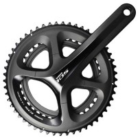 Guarnitura doppia realizzata in alluminio, compatibile con catene 11V. Spider a 4 braccia, identico per tutte le combinazioni di corone. Perno movimento centrale integrato su pedivella destra. Pedivelle e corona esterna cave, realizzate con tecnologia Hollowtech II. Misure disponibili: 170 - 172,5 - 175 mm. Dentature disponibili: 50-34, 52-36 e 53-39. Richiede calotte filettate (Dura-Ace o Ultegra) oppure calotte Press-Fit 86,5 mm. Anodizzazione nera. Peso: 740 gr. (170 mm. - 50/34).