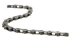Catena per gruppi a 11 velocità. Maglie esterne con trattamento superficiale in nickel, per migliorare la resistenza a corrosione e la scorrevolezza. Connettore di chiusura PowerLock Silver. Peso: 259 gr. (114 maglie).