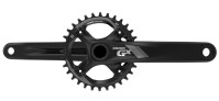Guarnitura monocorona per MTB realizzata in alluminio fogiato serie 6000, compatibile con catene 11V. Spider a 4 bracci, con giro bulloni di 94 mm. Perno movimento centrale integrato in acciaio, con diametro di 24 mm. Corona X-Sync realizzata in Ergal 7075 tramite processo CNC, con 32 denti a profilo maggiorato. Anodizzazione nera. Misure disponibili: 170 - 175 mm. Richiede calotte SRAM GXP Team oppure GXP Press-Fit. Disponibile anche in versione Boost. Peso: 720 gr. (175 mm.).