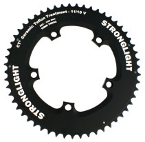 Corona in Ergal 7075-T6 a profilo aerodinamico, per guarniture con giro bulloni Shimano da 130 mm. Compatibile con catene 10/11V. Trattamento superficiale in Ceramica e Teflon: la diminuzione dell'attrito comporta un aumento di silenziositą e durata dell' 80% rispetto a corone tradizionali ! Anodizzazione nero opaco. Dentature disponibili: 53 - 54 - 55. Peso: 137 gr. (53 denti).