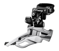 Deragliatore per guarnitura doppia, compatibile con tecnologia Dyna-Sys a 11 velocità. Disponibile con attacco a fascetta alta (High Clamp) oppure a fascetta bassa (Low Clamp) oppure a fissaggio diretto (Direct Mount). Compatibile con tiraggio del cavo dall'alto (Top Pull) e dal basso (Down Pull): solo dal basso per modello Low Clamp. Corpo anodizzato nero, con forcella argento. Versione a fascetta con diametro da 34,9 mm. (e 31,8 mm. tramite apposito riduttore fornito in dotazione). Corona massima: 38 denti. Capacità: 10 denti. Peso: 151 gr. (High Clamp).