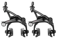 Freni a doppio fulcro, realizzati in alluminio forgiato. Dispositivo autocentrante. Regolazione orbitale dei pattini. Ruotismo su cuscinetti a sfere. Minuteria in ergal. Compatibili con coperture fino a 28 mm. Colore: nero. Peso coppia: 317 gr. Garanzia: 3 anni.