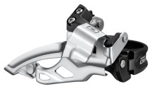 Deragliatore per guarnitura doppia 10V. Compatibile con tiraggio del cavo dall'alto (Top Pull) e dal basso (Down Pull). Disponibile con attacco a fascetta bassa (Top Swing) oppure a fascetta alta (Down Swing). Compatibile con tutti i diametri (34,9 - 31,8 e 28,6 mm.), tramite appositi riduttori forniti in dotazione. Corpo anodizzato nero, con forcella cromata. Corona massima: 40 denti. Capacità: 14 denti. Pesi: 160 gr. (Top Swing).