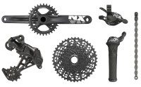 Gruppo senza freni ad 11 velocità, composto dai seguenti 6 pezzi: - cambio SRAM NX1 11V; - comando cambio SRAM NX1 Trigger 11V oppure Grip Shift 11V; - guarnitura monocorona integrata SRAM NX1 11V, con corona da 32 denti; - movimento centrale GXP Team oppure GXP Press-Fit; - pacco pignoni a scelta tra modello SRAM PG-1130 da 11/42 denti oppure modello SRAM XG-1150 da 10/42 denti; - catena SRAM PC-1110 11V. Pesi: 2021 gr. (pignoni XG-1150) - 2165 gr. (pignoni PG-1130).
