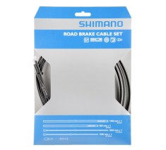 Kit completo di guaine e cavi per freni Shimano da strada. Guaina disponibile nei colori nero, rosso, grigio e bianco. Diametro guaina: 5 mm. Lunghezza guaina: 220 cm. Coppia cavi teflonati PTFE (uno da 100 cm. ed uno da 205 cm.). Sono inclusi i capi-guaina ed i terminali cavi in ergal. Peso kit completo: 150 gr. (guaine + cavi).