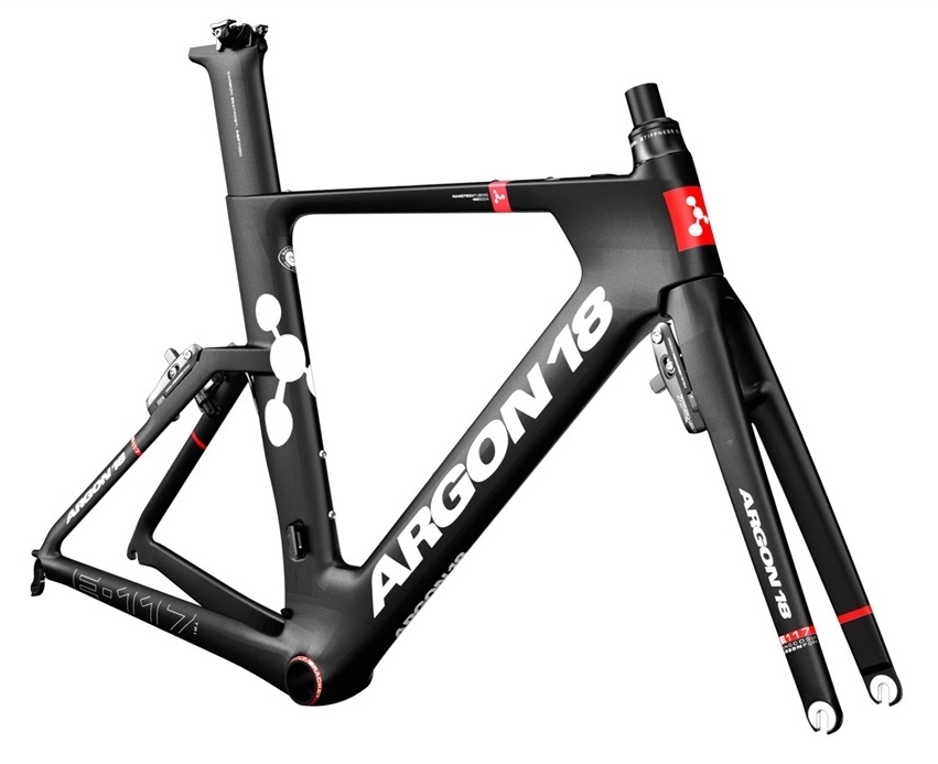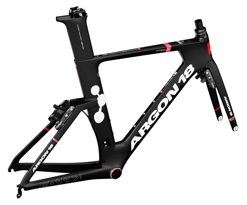 Telaio monoscocca aerodinamico, specifico per Triathon e corse a cronometro, costruito in fibra di carbonio ad alto modulo 5004 HM Nanotech.