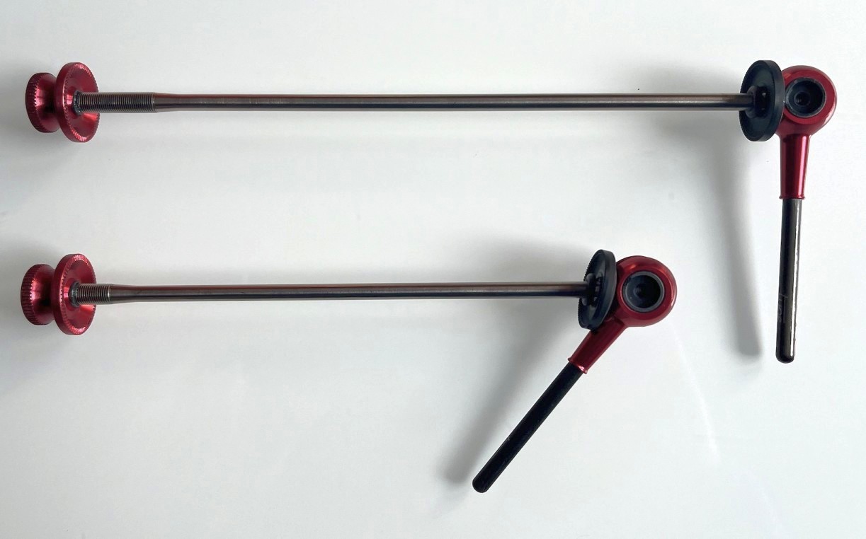 Coppia di bloccaggi rapidi, realizzati in carbonio, titanio ed alluminio 7075.