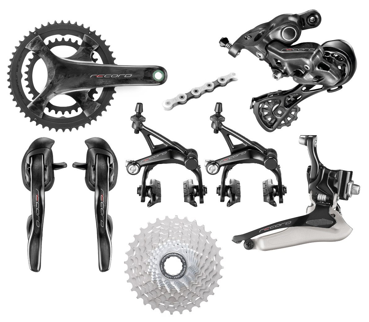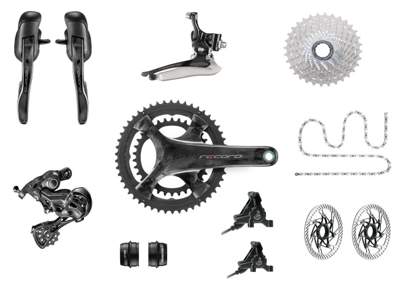 - comandi Record Ergopower Ultra-Shift 12V con cavi/guaine per freni/trasmissione (in versione idraulica per freni a disco, con cavi/guaine per trasmissioni e tubi/olio per freni);