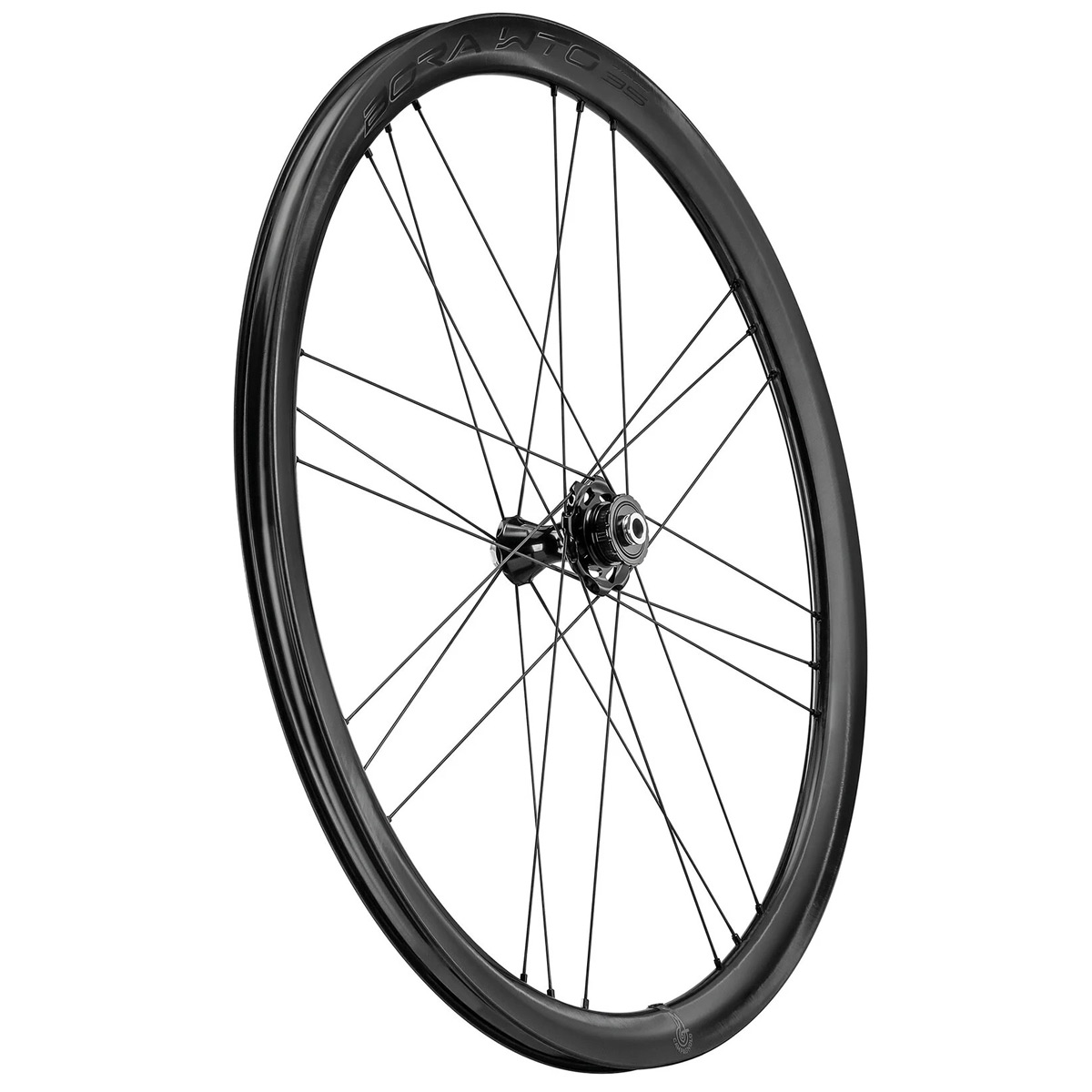 Mozzi monolitici ed aerodinamici in alluminio, flangia oversize Mega G3 e movimento su cuscinetti ceramici USB, con sistema cono/calotte e microregolazione del gioco: anteriore per assale passante 12x100, posteriore per assale passante 12x142.