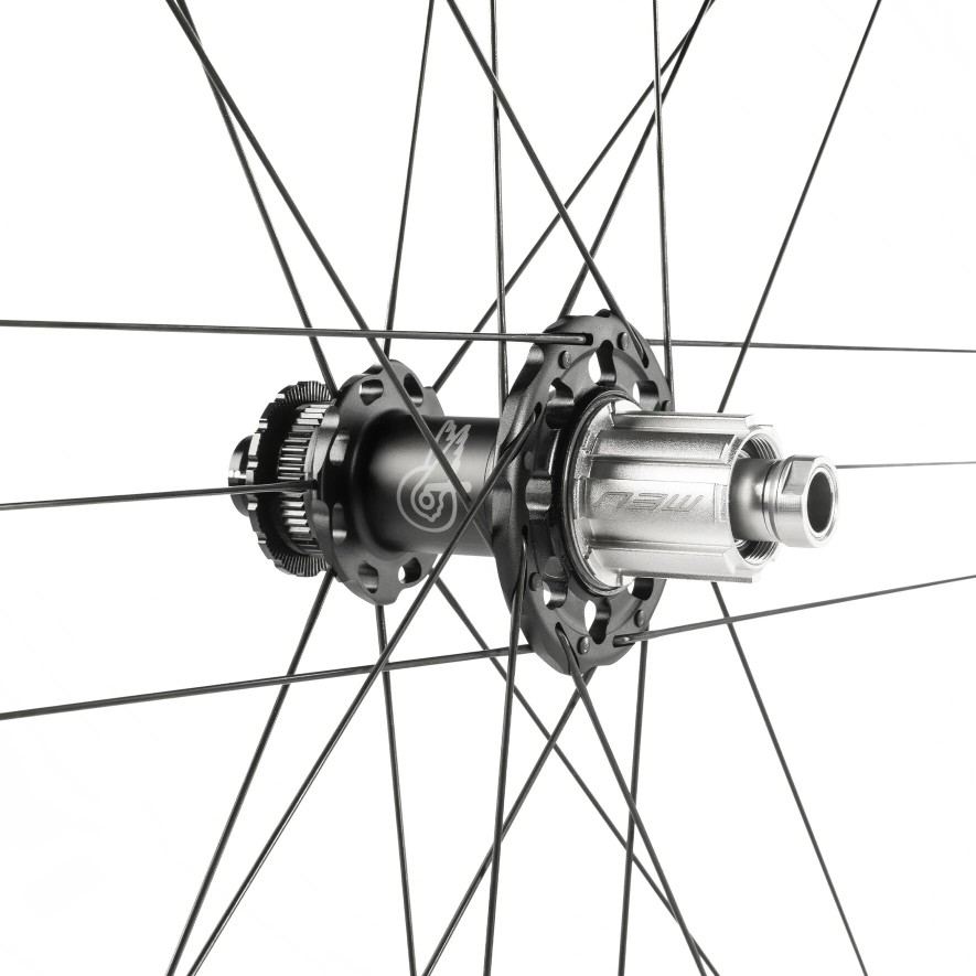 Ruota posteriore con 24 raggi differenziati a montaggio G3 (8 radiali sul lato sinistro e 16 incrociati sul lato cassetta).