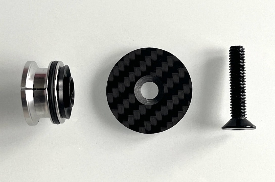 Tappo di chiusura attacco in carbonio 3K, con finitura opaca.
